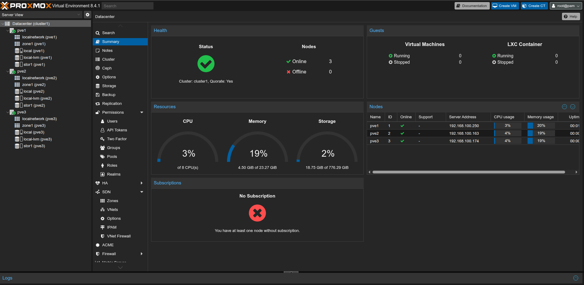 * **pve1**: `192.168.100.250`